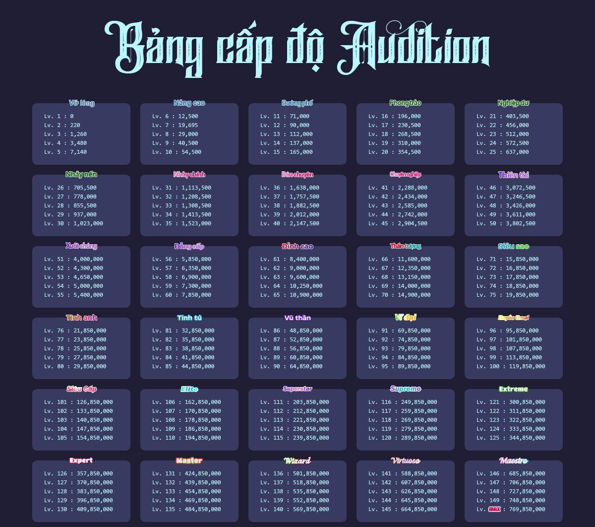 Lưu ý: acc chỉ có đồ cơ bản và đồ kỷ niệm cấp độ nếu LV cao đạt các mốc